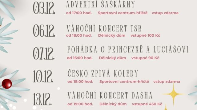 🎄 Přinášíme vám stručný přehled adventních akcí! Těšíme se na společné setkávání, sváteční atmosféru a krásné předvánoční zážitky. ✨ 📌 Bližší informace k akcím najdete ZDE