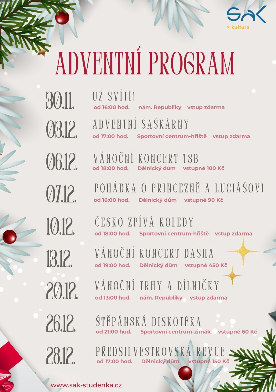 24. listopadu 2025🎄 Přinášíme vám stručný přehled adventních akcí!
